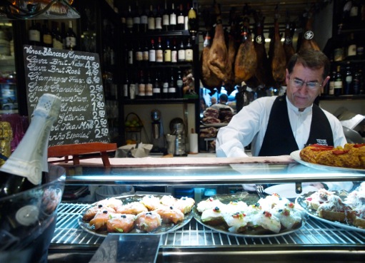 Während sie über den beeindruckenden Wandel der Industriestadt zur Kunstmetropole erzählt serviert uns der Kellner des `Victor Montes´ ein Pincho zum Glässchen Wein, elaborierte kleine belegte Brötchen, welche das Rückgrat der baskischen Ernährung darstellen. Und auch gleich anschaulich erklären, warum genau hier im Baskenland die Molekularküche ihren Ausgang genommen hat. Der Klassiker `Bakala pil-pil´ besteht aus langsam mit Knoblauch und Olivenöl in der Tonpfanne sautiertem Stockfisch, die aus dem Kabeljau entweichende Gelatine bildet mit dem Öl eine raffinierte Suspension, heute nennt man das dank Ferrian Adriá und Martin Berasategui Textur.