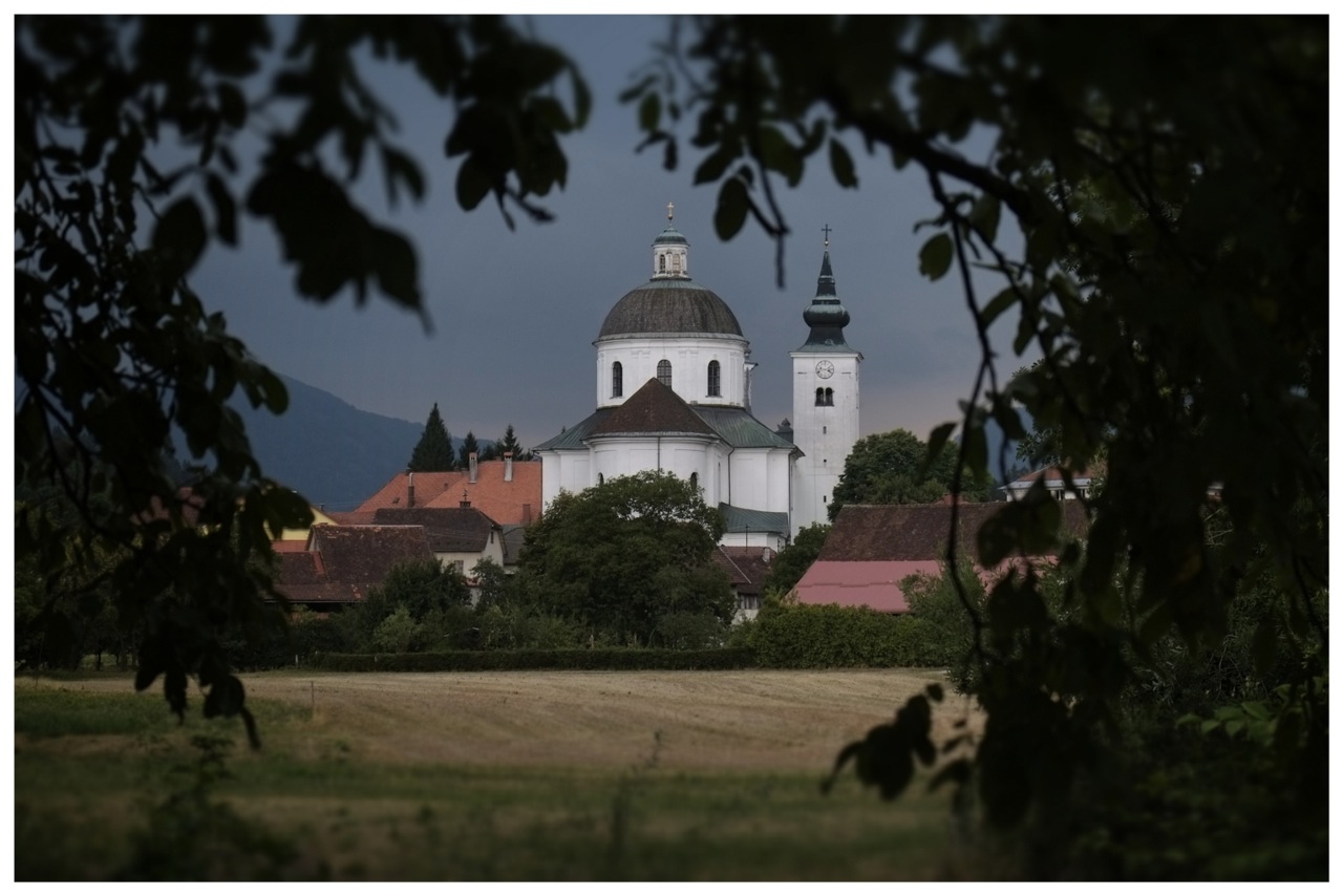 Die auffällige Gelassenheit der Menschen könnte von den Erträgen ihrer Feldarbeit herrühren, Hopfen rankt sich an zehn Meter hohen Konstruktionen gen Himmel, dazwischen wächst das Getreide naturbelassen, vor den kleinen Höfen zieht man buntes Gemüse, von industrialisierter Landwirtschaft weit und breit keine Spur. Das nämliche Neue Stift stammt aus dem Jahre 1869, ist ergo neoklassisch, die unlängst gekalkte Facade hebt sich malerisch von den dunklen Gewitterwolken über den Bergen ab. Und die bukolische Ruhe kontrastiert nun ein Donnergrollen, Blitze suchen ihren Weg in die Mobilfunkantennen am Kamm, glücklicher Weise wartet am Pass ein nettes Eiscafé, selbst die Chauffeure der Lieferwagen, welche die Route offensichtlich als Abkürzung kennen, suchen nun hier Zuflucht vor dem prasselnden Niederschlag.