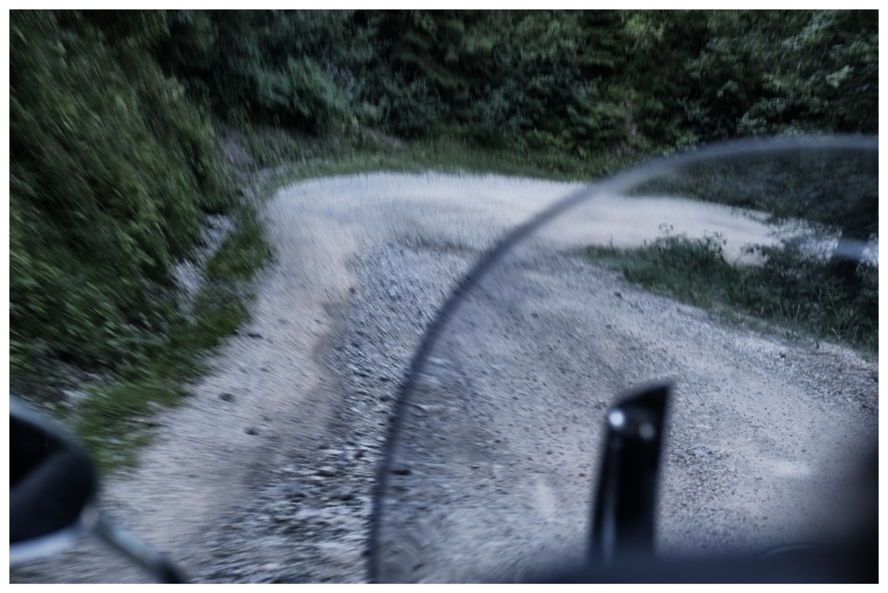 Der Forst, durch den die markierungslose Piste führt, muss in Privateigentum stehen, so aufgeräumt wirkt er, und die Schranken, welche das vordringen auf Forststrassen verhindern, sind in dezentem Grün gehalten und schauen nicht nach beamtetem Bundesförster aus. Nach wenigen Minuten hüpft man geradewegs über eine Kuppe, das Zollhäuschen balanciert unbeaufsichtigt obenauf, schon sind wir wieder in Slowenien, also auch hoheitstechnisch gesehen. Laut Freytag und Berndt sollte uns ein Umweg über Süden bis nach Gorenje und somit etwa sechzig Kilometer erspart bleiben, wenn wir nur möglichst nahe am Kamm bleiben und die Abzweigung ins richtige Tal, jenes der Meza nämlich, Gemeindegebiet von Bistra.