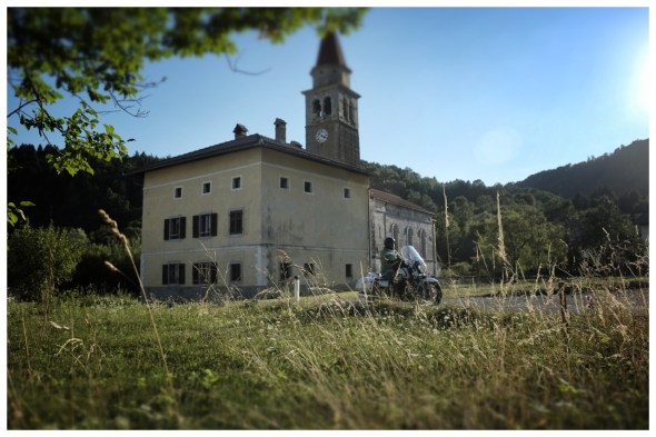 Lag zu Radetzky´s Zeiten die Grenze zwischen italienisch und slowenisch noch am Isonzo, wanderte sie im Ersten Weltkrieg hart umkämpft wieder hinauf auf den Bergkamm des Kolovrat, wie zu venezianischen Zeiten. Die italienische Armee hat hier eine `linea d´armata´ errichtet, ihre dritte Verteidigungslinie, und so mit ihren bekannt gelungenen Militärstrassen dem Motorradfahrer ein erquickliches Betätigungsfeld hinterlassen. Über aussichtsreiche Wege stösst man so hoch oben nach Norden vor, der Ausblick ist umwerfend, der Rückblick auf die Aktivitäten vor hundert Jahren raubt einem allerdings auch den Atem, ettliche Freilichtmuseen und die zahlreiche Soldatenfriedhöfe erzählen die traurige Geschichte von den zwölf blutrünstigen Isonzoschlachten rund um Bovec/Plezzo/Flitsch/Plèz oder, wie die Einheimischen sagen, Bec.