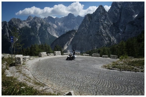 Wir immerhin die sechzig Kehren des Vrsić, sie sind akribisch durchnummeriert, von hüben nach drüben, auf der Nordseite gepflastert, die ganze Strecke ein einziges Vergnügen, nur der dichte Verkehr um Ferragosto kann es ein wenig trüben, manchmal legt sich auch ein übermotivierter Holländer auf die Nase, Sommerurlaub halt.