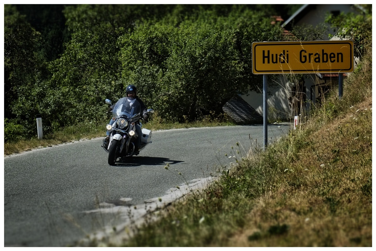 Moment, Alle? Natürlich nicht, wir Motorradfahrer zählen ja zu den letzten Widerstandsbewegten, statt komfortabel in den Süden zu jetten setzen wir uns auf Kraftfahrzeuge, die umfallen können, und sobald Andere den Scheibenwischer betätigen wurschteln wir unter einer Brücke wasserdichte Überzieher aus dem knappen Gepäck- falls uns das Glück hold ist. Und auch wenn die Behauptung, der Weg wäre das Ziel, ganz offensichtlich semantischer Schwachsinn ist, huldigen wir ihr, diesmal indem wir statt zwei Stunden über die Südautobahn einen halben Tag durch die Mur-Mürz-Furche gen Süden pflügen, irgendwann aus dem 17er Korsett ausbrechen, das Alpl bezwingen und entlang der Feistritz nach Süden strömen, der Name wird uns auf der Reise noch öfters begegnen. Graz umschiffen wir zeitsparend um rasch vom grünen Herz der grossen und starken Leute ins, de facto gleichnamige, windische Stajerska übersetzen können, passender Weise über die grüne Grenze.