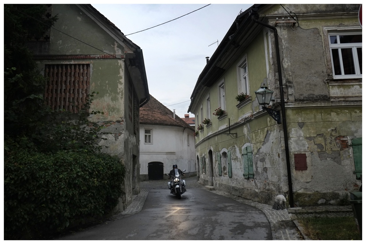 Schnell hellt der Himmel im Süden wieder auf, durch Nebelschwaden tasten wir uns über glitschigen geschliffenen Asphalt hinunter ins Tal der Kaminška Bistrica, wieder eine Feistritz, diesmal bringt sie den Reisenden nach Stein in der Krain, wie Kamen bis vor gar nicht so langer Zeit hiess. Da war aber auch noch nicht die Autobahn in Betrieb, welche die Verkehrsströme nun viel weiter im Süden gen Laibach fliessen lässt, die Triesterstrasse hatte sich noch durch diese Stadt bemüht, immerhin eine der ältesten Sloweniens. Dank der Energie der Bistrica und dem Seiner Allerhöchsten Durchlaucht gefallen habenden Anschluss an die K&K Südbahn durfte Kamnik auch an den Segnungen der industriellen Revolution teilhaben. Übrig geblieben sind ein ausgesprochen romantischer mittelalterlicher Stadtkern, zwei Burg- und einige malerische Industrieruinen, sowie eine rege Kulturszene. Die profitiert vor Allem von den privilegierten Pendlern, nur vierundzwanzig Kilometer vom hektischen Laibach entfernt wohnt hier offensichtlich der Bobo ganz gerne.