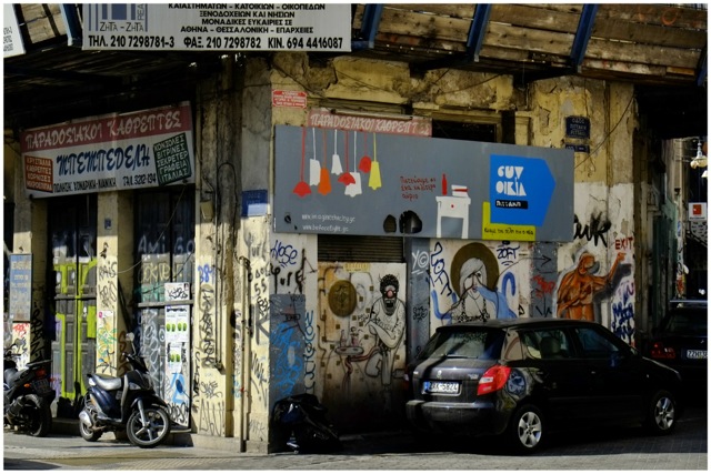 An der Plateia Eleftherias, welcher wiederum ausschliesslich als Kumunduru bekannt ist, stösst man auf die Piraeous, auf der Karte als Tsaldari ausgewiesen. Am gegenüber liegenden Strassenufer kann man Viertel von Kerameikos dabei zusehen, wie es sich aus einem heruntergekommenen Stadtteil in ein neues Hoffnungsgebiet mausert. Erst haben Künstler die billigen Lager und Kontorhäuser als Ateliers entdeckt, die malerischen kleinen Bordelle haben sie nicht wirklich gestört. Mit `Remap Athens´ hat diese Entwicklung im heurigen Herbst ihre organisierte Präsentation erlebt, falls sie die Arbeit des aktuellen Biennale Direktors inspizieren wollen, finden sie diese in einem leer stehenden Laden an der Ecke Thermopilon und Keramikou. Vom zwielichtigen Charakter der Umgebung sollten Sie sich nicht irritieren lassen, Athen ist noch immer eine der sichersten Städte Europas. Und eine der interessantesten obendrein, lassen Sie sich ruhig überraschen!