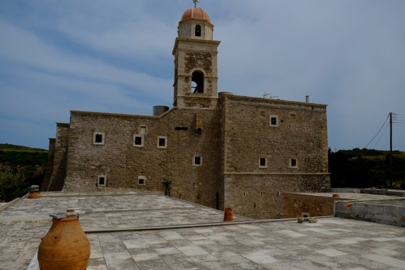 Das der Panagia Akrotiria, der Maria vom Kap, geweihte Kloster wurde wohl im vierzehnten Jahrhundert gegründet, bald darauf ausgerechnet von den Maltesern geplündert, die Mauern von einem Erdbeben schwer in Mitleidenschaft gezogen. Da unterstand Candia, wie sie die Insel nannten, schon der Hoheit der Venezianer; denen war die strategische Anlage einen nennenswerten Betrag wert, wohl haben sie auch die Kanonen springen lassen, dem das Kloster seinen Namen verdankt. Bald kamen die Osmanen, unterwarfen Kreta, und wunderten sich nicht schlecht über diese Mönche, die aus allen Rohren feuerten, `Moni Toplu´ heisst das Kloster seither, das mit der Kanone.