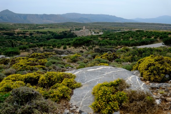 Ganz drüben im Osten fällt das Land zum Meer hin in den berühmten Strand von Vai ab, mit dem einzigen autochthonen Palmenhain Europas. Diese Traumdestination hat natürlich zwischenzeitlich das Interesse potenter börsennotierter Immobilienentwickler geweckt, die rasch mit dem Abt des Klosters als Repräsentant des Grundbesitzers handelseinig wurden. Eine hypertrophe Ferien- und Golfanlage wollen sie im wasserarmen Schutzgebiet errichten, doch da haben sie die Rechnung ohne die bekannt widerspenstigen Kreter gemacht. Die riefen eine Bürgerbewegung ins Leben, welche diese Pläne durchkreuzen will. Ihnen ist der status quo als natürlicher Lebensraum für Menschen, Tiere und Kulturpflanzen nämlich wichtiger, als der versprochene Geldregen.