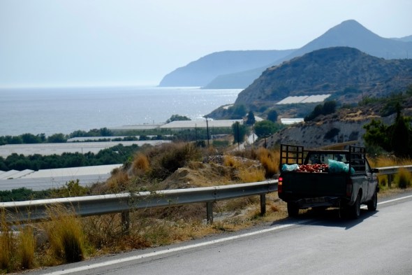 Immer noch im candischen Orient, aber unten an der Südküste bei Ierapetra haben die einheimischen Bauern schon viel früher einen Kompromiss gefunden, der ihnen ein Auskommen ermöglicht hat, indem sie sich mit holländischer Hilfe ein regelmässiges Einkommen gesichert haben. Immer schon von den Früchten ihrer Arbeit und ihrer Erde in der einzigen nennenswerten Ebene an der Südküste abhängig, hatten die Bauern dieses, eher abgelegenen, Landstrichs das Problem, dass ihre Ernte immer länger bis zu den Märkten brauchte, als jene der Konkurrenz in der Nähe der Häfen im Norden. Da traf sich´s gut, dass gerade ein junger Agraringenieur Ausschau nach dem geeigneten Versuchsfeld für seine revolutionäre Entwicklung hielt. Paul Kuypers hatte in seiner Heimat Holland Landwirtschaft studiert, dem harschen Klima dort wollte er mit schnell zu errichtenden Gewächshäusern im grossen Stil Paroli bieten. Seine Idee wollte sich in den Niederlanden nicht recht durchsetzen, so dass er, Ironie der Geschichte, sein Glück wo anders suchte. Angekommen ist er schliesslich 1965 in Ierapetra, wo die Landwirte in der Gegend von Xyrokampos, wörtlich dem trockenen Feld, dem Boden abtrotzten, was der hergab, darunter auch kleine widerstandsfähige Paradeiser. Nach denen lechzte die eben entstehende Wohlstandsgesellschaft Nordeuropas, schnell waren die lokalen Landwirte von Kuypers´ Idee überzeugt. Nach Wasser bohrte man erst tiefe Brunnen, baute später Stauseen in den Bergen, die den Winterregen speicherten. Dank der sonnigen Lage am Libyschen Meer brachte man nicht nur reiche sondern auch frühe Ernte ein, reüssierte am Exportmarkt, der Bezirk Ierapetra ist immer noch der Einkommensstärkste ganz Griechenlands.
