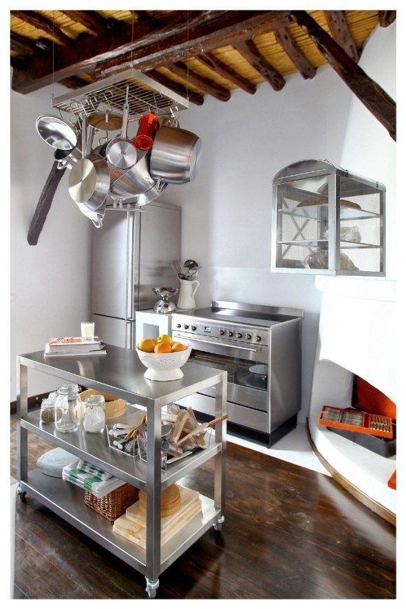 Das gilt auch und ganz besonders für das Haus der Carabellas, beziehungsweise die Häuser, sind ja eigentlich ursprünglich vier kleine Häuschen, die sich um einen geschützten Garten scharen. Georgias hat mit lokalen Handwerkern die einstigen Ställe akribisch restauriert und adaptiert, stets darauf bedacht, den ursprünglichen, bäuerlichen Charakter zu konservieren, den Charme der uralten Balken, hohen Räume und massiven Mauern zu erhalten. Gleichzeitig stellt er aber höchste Ansprüche an Ausstattung und Meublage, edle Antiquitäten aus London, Marrakesch und Südfrankreich komplimentieren feine Erbstücke, in Küche und Bad ergänzt durch modernste Applikationen und Geräte, sowie Entwürfe von Castiglioni, Marc Newson und aus eigener Hand.