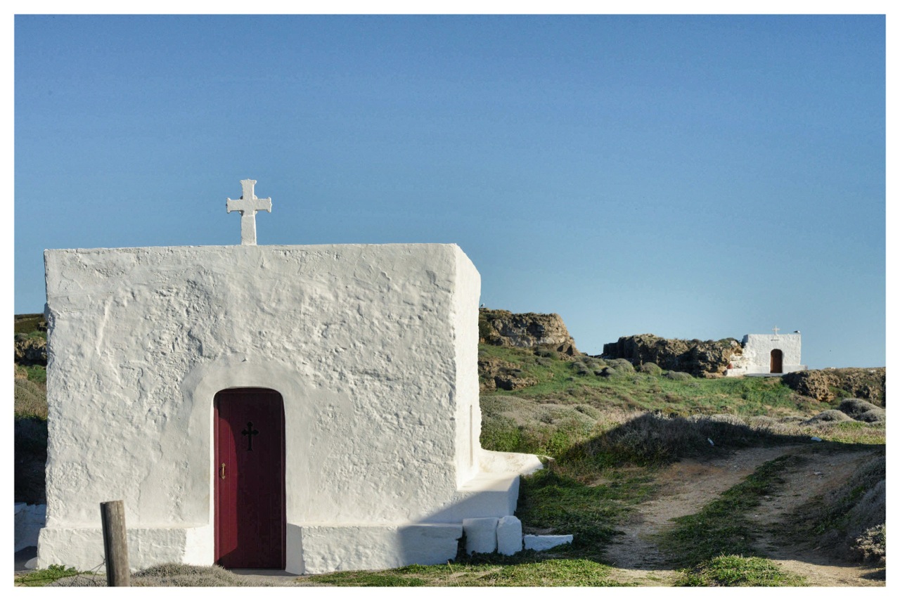 Viel Stein also, wenig fruchtbares Land, und, wie überall im orthodoxen Hellas, Kirchen. Gottes Hilfe nah zu wissen kann nicht schaden, schon gar nicht, wenn man im Steinbruch arbeitet, und so hat man wohl schon immer in der kleinen Kapelle des Heiligen Nikolaus ein Kerzerl angezündet, auf dass einem nicht ein massiver Brocken zum Verhängnis werde. Und zwar mitten drin im Fels, rundherum wurde abgebaut, bis schliesslich nur noch ein massiver amorpher Quader stehen blieb, und drin die Kirche. Die steht dort noch immer, und noch eine zweite, kleinere Kapelle, und ganz vorn am Ufer, die Grundmauern von den Wellen umspült, wartet eine alte Windmühle, heute dient sie als Snackbar, auf Laufkundschaft.