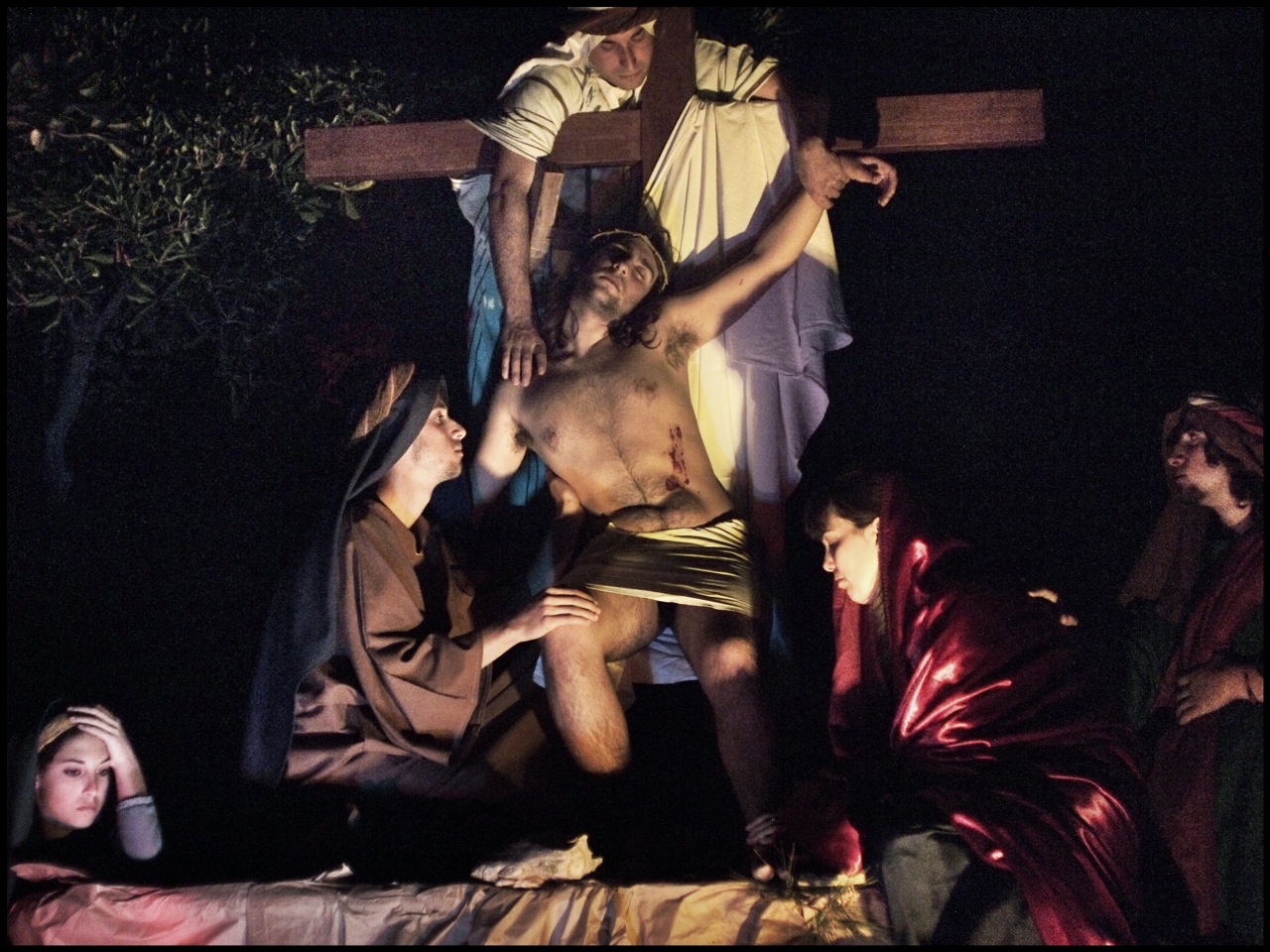 Vor der Extase steht allerdings die Besinnung auf dem Programm, den Karfreitag verbringt man am Besten in Mapissa bei der Prozession hinter dem Epitaph, der die Grablegung Jesu in Erinnerung ruft. Der geschmückte Schrein, der symbolisch die Gebeine des Erlösers beinhaltet, wird unter reger Anteilnahme der Gläubigen durch und um den Ort getragen, an den Stationen des Kreuzweges vorbei. Die sind jedoch nicht nur einfach unbelebte Marterln wie bei uns, nein, in Mapissa wird jede Szene aus der Passionsgeschichte leibhaftig nachgestellt, voller Inbrunst wird der gestürzte Messias unter dem Kreuz von römischen Legionären ausgepeitscht, der am Galgen baumelnde Jehuda aus Qariot geschmäht, auf dem zum Golgota umgedeuteten Gemeindeparkplatz dem am Kreuz hängende Gottessohn und seinen zwei Leidensgenossen Mut zugesprochen. Dabei kann es, zumal in kalten Nächten, schon mal vorkommen, dass die Drei gelabt werden müssen, vorzugsweise mittels Souma, dem lokalen, ausgesprochen wohlschmeckenden Grappa, wenn´s dann auch noch regnet und Jesus schon sehr aufgewärmt ist kann ihm schon auch mal ein Wort des Zornes auskommen, nicht gerade „Vater, warum hast du mich verlassen“, eher „Mama, wieso hast du mir keinen Anorak mitgegeben“ oder so.