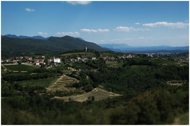 Über dem malerischen Dörfchen thront weithin sichtbar ein protziges Mahnmal, wieder so eine italienische Manifestation nationalen Wahns. Den haben sich die Slowenen beneidenswerterweise erspart, wir Deutschösterreicher hingegen wissen darüber Bescheid, wenigstens die, welche das wollen. Eine Reise auf dem Pot Miru/ Sentiero della Pace/ Friedensweg hilft jedenfalls der Erinnerung auf die Sprünge, und der Umgang der Menschen beiderseits der kaum noch spürbaren Grenze kann man sich durchaus zum Vorbild nehmen. Dass dabei auch lukullische Belohnung winkt können Sie gleich an Hand der Weine von Collio/Gorska Brda ausprobieren, die wachsen und gedeihen auch prächtig ohne Rücksicht auf Ethnien oder Geographie!
