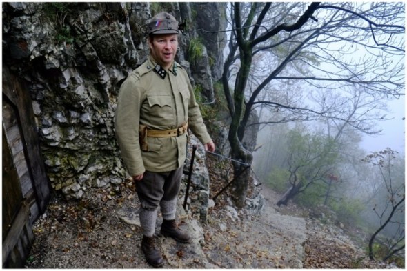 Noch weit härter muss der Alltag am Sabotin gewesen sein, einem ausgesetzten Berg am westlichen Ufer der Soca, welcher den Österreichisch-Ungarischen Truppen als Verteidigungs- und Erkundungsposten diente. Sein gesammtes Gipfelplateau ist durchzogen von Stollen und Höhlen, gen Westen blickt man aus den ehemaligen Artelleriestellungen über das Weinbaugebiet von Gorska Breda hinüber auf den Piccolo Collio. An der Ostflanke erkennt man noch deutlich die Installationen der Seilbahn hinunter ins Tal, die den Nachschub sicherstellten. Nach der Eroberung durch italienische Truppen 1916 änderte sich die Zielrichtung natürlich rasch um 180 Grad, an der Lawinengefahr im langen Winter änderte das aber natürlich auch nichts.