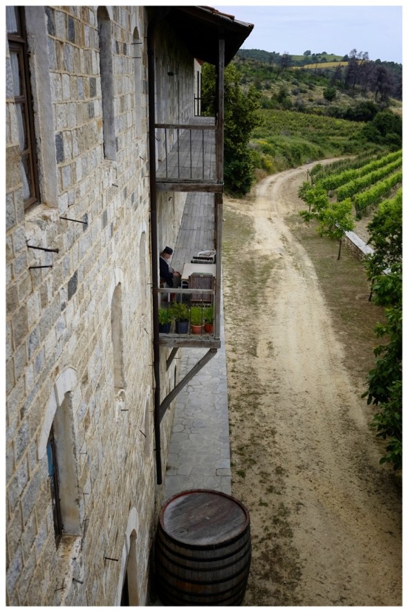 Das tun zwar die Mönche des Athos auch, moderne Maschinen sucht man noch vergeblich, doch ein Zugeständnis an die Hingabe an ein durch und durch spirituelles Leben macht den Zugang zu tierischem Eiweis schlicht unmöglich. Um im Garten der allerheiligsten Mutter Gottes, wie die Mönche ihr Land gerne genannt hören möchten, vor weltlichen Ablenkungen gefeit zu seien ist weiblichen Wesen der Zutritt grundsätzlich untersagt, also jedenfalls Warmblütern, Bienenköniginnen und Artverwandte hingegen sind gern gesehen. Sonst kommt nur auf den Tisch, was in der heiligen Erde ohne chemische oder technische Tricks gedeiht, Slow Food also, oder, wie der Italiener, dem dieses Label schon zum Halse raushängt gerne sagt „kilometro zero“, was auch wirklich zutrifft, die Mönche müssen ja ständig beten, da kommt man gar nicht viel weiter von der Küche weg.