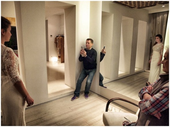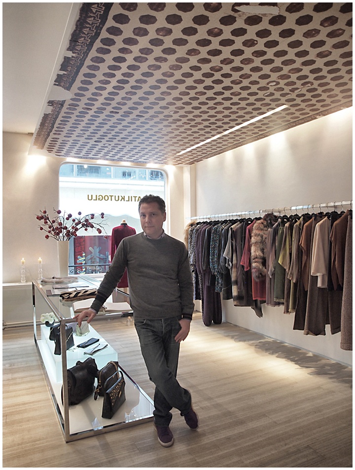 Atil Kutoglu zwängt sich in die Ecke neben dem Spiegel, um die elegante Dame vor dem Spiegel bei der letzten Anprobe ihres Hochzeitskleides mit ihrem Handy zu Photographiern, schliesslich muss sie ja ihre besten Freundinnen von den letzten Änderungen in Kenntnis setzen. Kutoglus Atelier liegt im Mezzanin eines prachtvollen Gründerzeithauses im gutbürgerlichen Wohn- und Geschäftsviertel Nisantasi, aus dem Schaufenster blickt man hinunter auf die enge, von edlen Boutiquen gesäumte Bostan Sokak. Gegenüber erhebt sich mit dem legendären Herrenausstatter Beyman quasi der Urvater der türkischen Modewelt fünf Stockwerke über seine Epigonen, vorne an der Ecke sind mit Louis Voutton, Prada und Gucci schon längst auch die Zeugen dafür eingezogen, dass Istanbul seinen Platz in der Welt der Reichen und Schönen längst gefunden und behauptet hat. Und gerade hier, in jenem Stadtteil, wo sich seit über hundert Jahren die bürgerlichen, westlich orientierten, intellektuellen Eliten angesiedelt haben, scheinen auch dem Konsum keine Grenzen gesetzt zu sein. „Wenn in Wien jemand eine Stunde in meinem Geschäft steht, drei, vier Teile anprobiert, bin ich schon froh, wenn er schliesslich mehr als eines mitnimmt. Hier kommen die Kunden herein, schauen sich sechs Sachen an, und gehen manchmal mit neun raus“ schildert er einen wichtigen Beweggrund, 2009 ausgerechnet hier sein Flagshipstore eröffnet zu haben.