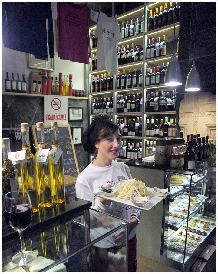 Willkommene Tränke hinter dem Galata Turm, die besten Weine aus dem ganzen Land, feine mediterrane Snacks