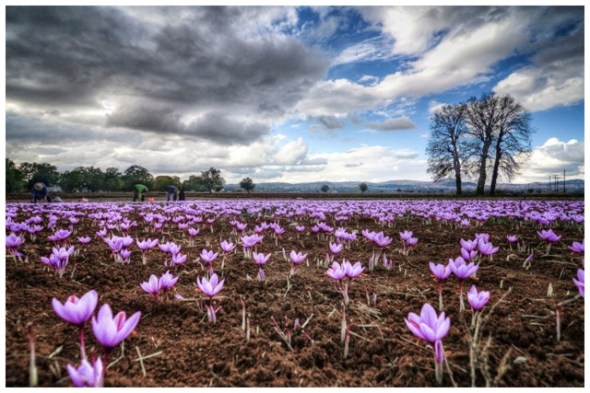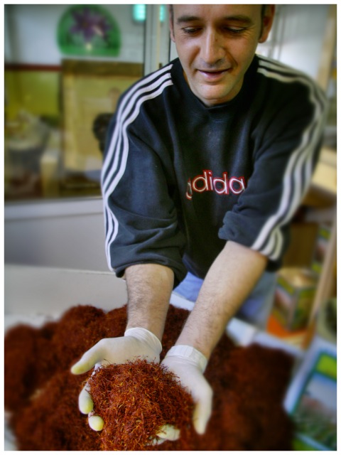 Ob der kluge Kopf damals seinen Schnitt gemacht hat ist nicht überliefert, den Bauern bringt die Frucht jedenfalls nicht das schnelle Geld. Ziemlich mühsam gestaltet sich die Ernte, aus etwa 150.000 Blüten mit einem Gesamtgewicht von ungefähr 300 Kilo wollen erst mal die Stempel gepflückt werden. Die wiegen frisch vielleicht 5 Kilo, erst mal getrocknet bleibt dann ein knappes Kilo Safranfäden übrig.