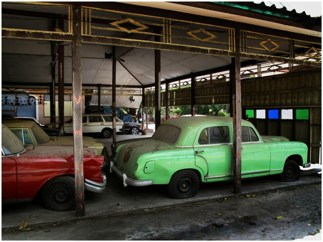 Doch dahinter geht´s los, ein Sortiment wie aus meiner Matchbox Kiste: E-Klasse Kombis, Range Rover, ein 74er S Mercedes, Wolgas, Rovers, Jeeps, Alfas, sogar ein 170er Mercedes aus den fünfziger Jahren in einer scharfen Hot-Rod Version! Und ein halbes dutzend der raren Adenauers. Die Geräte scheinen fahrtüchtig zu sein, für ein §48 Pickerl müsste man aber wahrscheinlich zumindest Scheibenwischergummis einfädeln und Reifen mit Profil aufziehen.