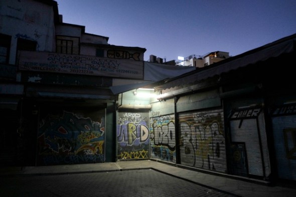 Vor gut zwei Jahren, als Hellas von Europa in die Finsternis gejagt wurde, schlossen sich ein paar Unentwegte zusammen, um den sprichwörtlichen Lichtstreif an den Horizont zu malen. Einem Aufruf, nicht mehr benötigte Beleuchtungskörper im Büro der Initiative Syn-Oikia abzugeben folgten die Nachbarn derart zahlreich, dass die Lichtkünstler von Before Light kaum mit der Montage nachkamen. Mittlerweile kommt der Strom auch nicht mehr durch die Fenster aus den Steckdosen der Anrainerwohnungen sondern ganz dank grosszügiger Sponsoren offiziell aus der Hauptleitung, auch die Instandhaltung scheint gesichert, die dunkle Zeit überwunden.