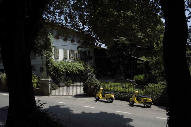 Wie man sieht, leben die Menschen hier wieder friedlich zusammen, haben das gewalttätige zwanzigste Jahrhundert ad acta gelegt, und geniessen, was der Boden an reichen Geschenken hervorbringt. Die kulturelle und kulinarische Vielfalt erfährt man ganz hervorragend mit den gelben Vespas, nirgendwo hin ist es zu weit, die hervorragenden Weine verkostet man vorzugsweise abends bei einem Winzer, bei dem man am Besten auch gleich nächtigt. Hier im Süden durchaus bei offenem Fenster, dann hört man als einziges Geräusch den Zug von Triest daherrattern, früher fuhr er in acht Stunden durch bis Wien, tempi passati, doch in den Wirtsstuben herrscht noch immer altösterreichische Atmosphäre.