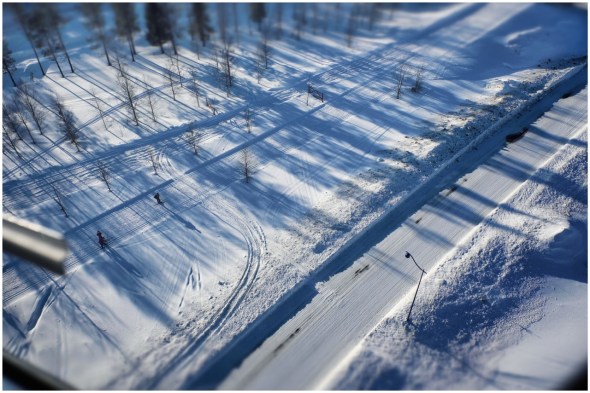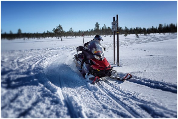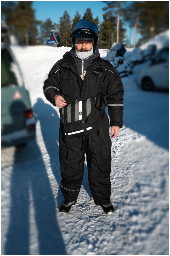 Überraschung anderntags, kurz nach Sechs finden die ersten Sonnenstrahlen ins Zimmer, das Fenster musste ich irgendwann einen Spalt öffnen, die Heizung hat es all zu gut mit mir gemeint. Abgesehen von ein paar lustigen Finnen, welche die Melodien aus den Karaoke Bars mit auf den Heimweg genommen haben hört man in der Nacht nichts, etwaigen Verkehrslärm dämpft der Schnee. Von dem, klagen die Einheimischen, sei heuer etwas wenig und selbst der erst spät gekommen, und ob er so lange liegen bleibt wie für gewöhnlich ist auch mehr als fraglich. Der Tag, mein erster in Sirkka, verspricht, wie auch die letzten 10, Temperaturen, die man um diese Zeit am Levitunturi bislang nicht kannte. Rechnet man sonst im März mit minus zwanzig in der Nacht und um die zehn Grad unter Null tagsüber, rechtfertigen die nun herrschenden Plusgrade durchaus die Bezeichnung Hitzewelle für ein Wetter, welches sich von jenem daheim in Wien kaum unterscheidet. Was mich aber mal gar nicht stört, steht doch eine ausgedehnte Tour mit dem Motorschlitten auf dem Programm. Für die habe ich extra lange Unterhosen, mehrere Lagen Langarmleiberl und meine HiTec Colmar Schikombi eingepackt, dicke Wollsocken und meine Loden Steinkogler Winterböcke, dazu ein ausgeklügeltes System von Unter- und Überhandschuhen, noch nie bin ich mit derart umfangreichem Gepäck zu einer 5-Tages-Reise aufgebrochen!
