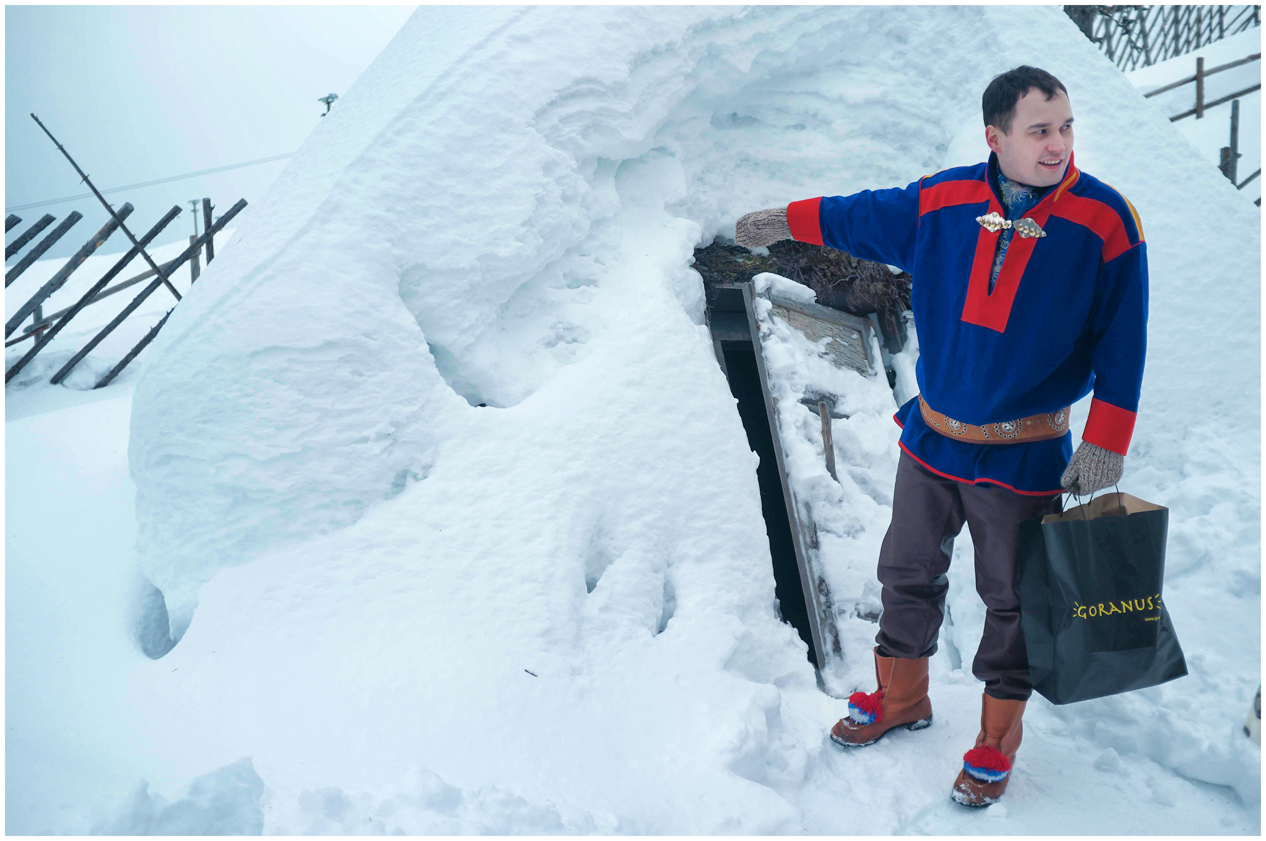 Endlich mal ein Morgen ohne Sonne, so gar ein wenig geschneit hat es in der Nacht, ein zwei Centimeter vielleicht, aber den Einheimischen taugt das, sie hatten schon Sorge um ihre Spikereifen, weil man den Asphalt auf den Strassen zu sehen begann. Wir begeben uns auf den Levi Summit, was nach Gipfel klingt ist aber nur die Mittelstation der Seilbahn. Wobei, das ist eher Untertrieben, da oben steht ein riesiger, hochmoderner Bau, Luxushotel plus Congress- und Ausstellungszentrum, derzeit dient es Porsche als Stützpunkt für deren Driving Expierience, sogar einen 918er haben sie mitgebracht, der steht auf den breitesten Spikereifen die ich je gesehen habe ganz unschuldig auf dem Parkplatz. Im Souterrain des Komplex hat das Samiland Unterschlupf gefunden, ein, trotz des Namens, ausgesprochen lohnendes Ziel. Ich habe schon im Reiseführer gelesen „die Samen sind leicht als solche zu erkennen, da sie nur selten über einen Meter sechzig gross werden“, und Ante passt genau in dieses Schema. Er hat, ganz alleine, auch ohne Hilfe durch die UNESCO, die ihr Logo frech auf den Ausstellungsplakaten platziert hat, dieses Informationszentrum auf die Beine gestelllt, welches tatsächlich umfassend die Welt der Samen präsentiert. Die Ausstellung zeigt im Haus anhand von Photos und Exponaten aus dem Familienbesitz der Vorfahren von Ante Aikio den Alltag der ersten Bewohner der Tundra, draussen hat er die verschiedenen Typen der Skolts, jener Gebäude, welche die in dieser Gegend ansässigen Bergsamen benutzten, wiederaufgebaut. Sein Grossvater Saikko-Niila, ein Inaari Same vom gleichnamigen See stammend, war einer der berühmtesten Samen, seine Herde soll 10 000 Exemplare umfassst haben, angeblich dank Hexerei und er wohlwollenden Fürsprache seiner Vorfahren bei den Göttern. Faktum ist, dass er sich erst am Totenbett, und somit als einer der Allerletzten, zum christlichen Glauben bekannt hat. Was man erst so richtig zu würdigen weiss, wenn man erst mal in Erfahrung gebracht hat, mit welch erschütternder Brutalität die Skandinavier ihre „Ungläubigen“ bekehrt haben. Ganz vorne mit dabei der schwedische Pfarrer, Botaniker und Missionar Lars Levi Laestadius, Begründer einer ultrakonservativen lutherischen Erweckungslehre, zu der sich auch der soeben zum Ministerpräsidenten gewählte Juha Sipilä bekennt. Da passt dann auch ins Bild, dass die offizielle Anerkennung der Samen und ihrer Bräuche erst in den 80er Jahren des vergangenen Jahrhunderts erfolgt ist, wobei es immer noch Einschränkungen, etwa hinsichtlich der erlaubten Herdengrösse, gibt.