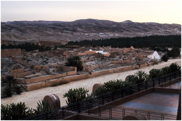 Der arabische Frühling aber blüht weiter in Tunesien, von den manchmal aufkommenden Spannungen merkt man hier in Tozeur nichts, die Menschen sind froh über die gewonnene Freiheit, demonstrieren sollen sie anderswo. Die beschauliche Stadt liegt in der Palmeriae de Tozeur am Rand des Chott el-Jerid, einem trockengefallenen Salzsee auf Meeresniveau, immer wieder wälzt man Pläne, ihn wieder mit dem Meer zu verbinden, um etwas Wasser in die Wüste zu leiten. Das könnte den Grundwasserspiegel anheben, aber eben auch die unterirdischen Quellen irritieren, und das wäre schade, denn dann hätte das Hotel Ras El Ain vielleicht Probleme seinen impossanten Pool zu Wohle der Gäste mit wohlig warmem Wasser aus der Tiefe der Oase zu füllen.