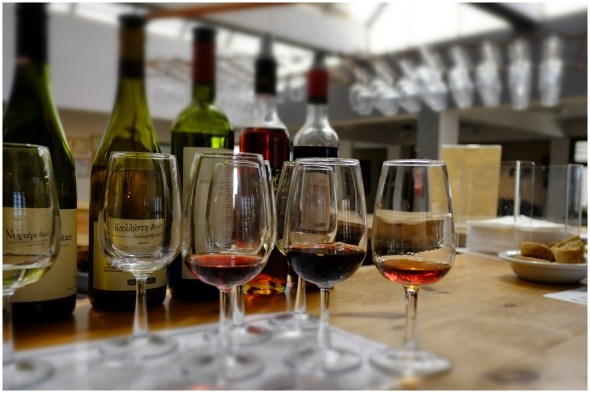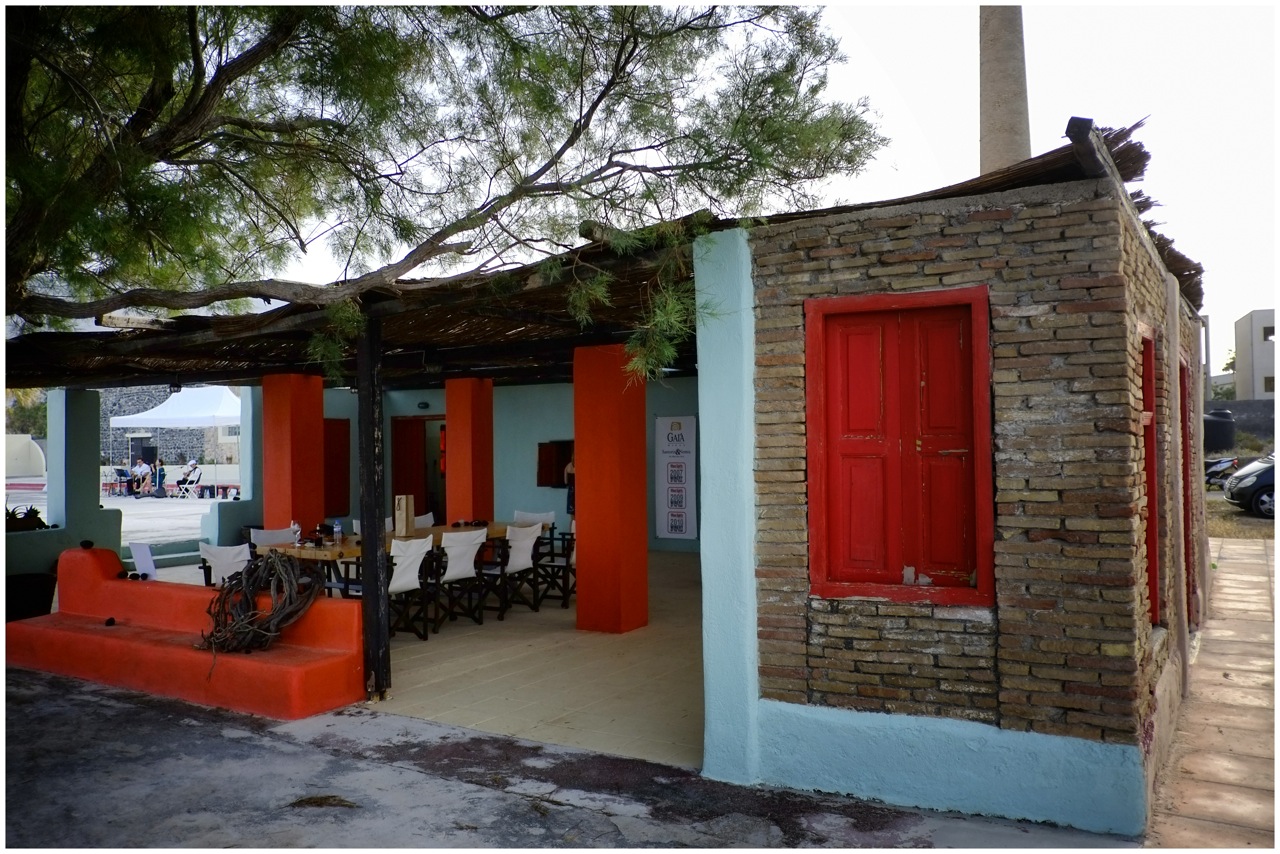 Den Gipfel der Genüsse erklimmt man aber auch ganz gemütlich auf der Domaine Sigalas ganz im Norden der Insel, dort wo sie bei Oia die Caldera zu umarmen scheint. Das tun übrigens auch reichlich Touristen, wenn sie den Sonnenuntergang bestaunen. Bei Sigalas gibt´s dazu noch eine feine Tasting Expierience, 6 der feinsten Tropfen zum 6gängigen Menü, katapliktiko! So, das hätten wir auch erledigt! Also hinunter auf den Flughafen, Auto abgeben, einchecken, warten. Halt! Erst Gepäck abgeben und Boarding Pass ziehen, danach bleibt ja erfahrungsgemäss immer noch zu viel Zeit, welche am Flughafen zu verbringen eigentlich schade wäre. Also Auto behalten, noch mal schnell weg, am Zaun entlang rund ums Gelände, bis, fast schon einmal rundherum, ein unscheinbares Strassenschild zur Gaia Winery weist. Gaia kommt vom Festland, gehört zu den Pionieren in Sachen biologischer Lebensmittel und hervorragenden natürlichen Weins, seit ein paar Jahren beschäftigt man sich auch mit den ganz speziellen Gegebenheiten auf der Vulkaninsel. Die Winzerei hat man in einer längst aufgelassenen Fabrik untergebracht, welche einst aus den süssen Tomaten geschmacksintensive Paste gemacht hat, wie sie heute noch von Kyknos massenweise in Supermarktregale geschlichtet wird.