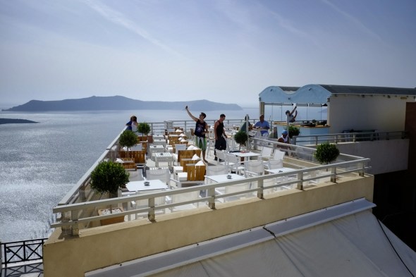 Geniessen kann man diese Inselfrüchte in Form einer authentischen, modernen und ausgesprochen feinen Küche in Begleitung einer repräsentativen Weinauswahl im „Assyrtiko“ ganz comme il faut mit dem Atemberaubenden Caldera-Blick in der Hauptstadt. Dort drängen sich zwar überall auf den Terrassen an der Hauptverkehrsader die Voyeure, nicht jedoch im Assyrtiko. Das steht nämlich auf der `falschen´ Seite, während links die Schanigärten einladend ebenerdig auf den Dächern warten, verlangt das Restaurant vom Gast erst die Besteigung des Gebäudes, eine Anstrengung, welche die Meisten abschreckt. G_tt sei dank! So geniesst man den unvergleichlichen Blick auf diese einzigartige Kulisse beinahe privat, während die Mittagssonne gemächlich den Zenit hinter sich lässt und die weissen Häuser in warmes Licht taucht.