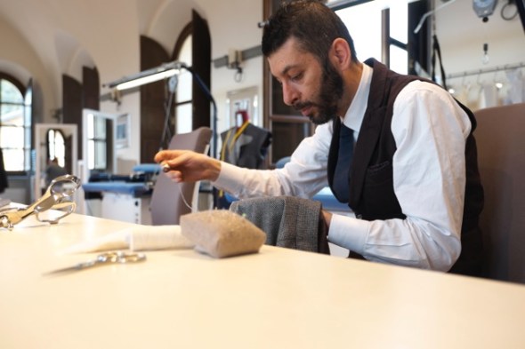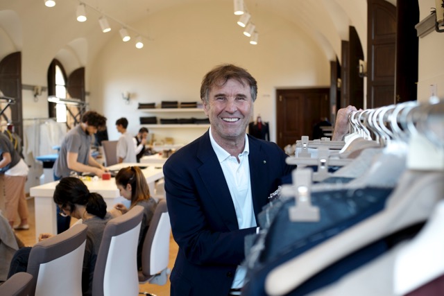 Cucinelli hat leicht reden, alles hier in Solomeo scheint seine Ideologie zu untermauern. Alle nennen ihn beim Vornamen Brunello, von seinem Büro im Turmzimmer des uralten Herrenhauses inmitten des kleinen Ortes am Hügel blickt man auf handwerklich perfekt restaurierten Gebäude, im schönsten davon hat er eine Schneiderschule eingerichtet.