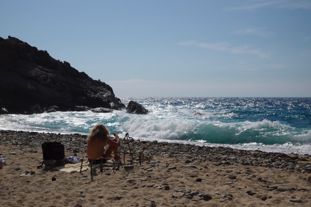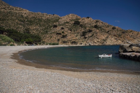 Of course the Ikarians view of mass tourism is a very particular one, as even in Armenistis, Ikarias declared touristic center, the number of accomodation is rather limited. In august there propably will be less tourists than in any average all-inclusive-resort on the minor asian coast across the narrow strait alone. Even then the long, white sandy beach, that made Armenistis the choice of sun seeking travellers, will never be as packed as you would expect. Now, in early June, you really have to look closely to spot the odd couple on the beach at all, never the less the both beach bars are allready open. „Oh yes, now it´s really beautifull and relaxed“, Maria states, „but in august the place will be packed!“ Which is no surprise, as „Bensao“, the cute establishment Maria is running, looks like a real magnet for surfers and beach bums. Artificial lawn to pamper bare feet, camouflage netting for the shade, cool drinks and tempting snacks to keep spirits high. „I don´t mind lots of customers in my place, but all the rubbish the campers leave behind really makes me sad!“