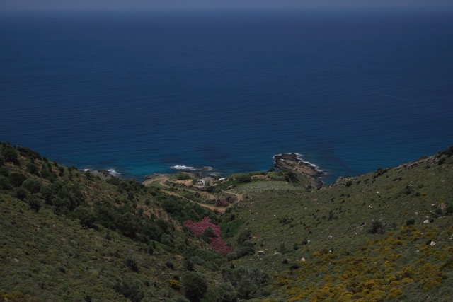 The Community of Raches resembles a couple of villages and spread out settlements actually making up for the western most third of Ikaria. The mountainvillage Raches itself, which actually is called Christos Rachon by its full name, being it´s capital. The other two thirds are named after their capitals Agios Kyrikos and Evdilos respectivly, both of them harbour towns, be it Evdilos only during summer season, whereas Agios Kyrikos enjoys a daily ferry service to and from Karlovassi on Samos. Ferry might be to big a word for the tiny vessel, not more than one van, some scooters and a dozen or two of passengers does it carry. The rest of the deck is being stuffed with anything that might be needed on the remote island, bags of cement and flour, toilet- and printing paper, even a compact electronic printing center, as the writing on the box says, is travelling to Ikaria. Even a handfull of tourists has made it on board, never too many, fortunately, as the Ikarians think, as that seems to be their bigest nightmare. Allready they look forward to high season with horror, when the Athenians will invade their island.