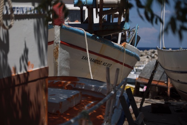 Die Insel der Seligen erreicht man nicht per Flieger, recht so, Namensgeber Ikaros ist hier abgestürzt. Das kleine Schinakel von Samos erinnert ein wenig an ein Flüchtlingsboot. Ein Lieferwagen, Mehlsäcke, Schüler, ein paar Touristen, alternativ gekleidet, Wanderer wahrscheinlich.