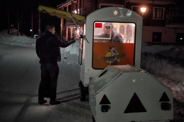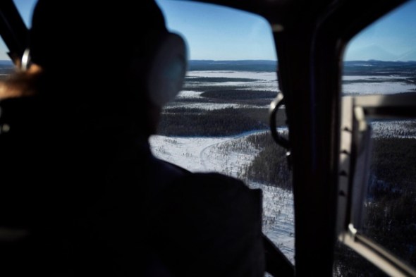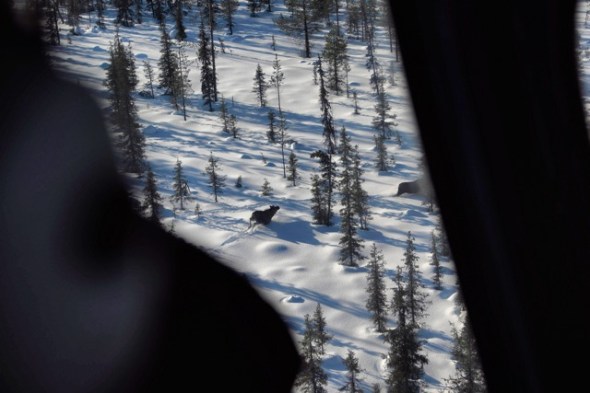 Man nimmt´s aber gerne in Kauf, dient es doch als Etappenziel der Snowmobil Safari rund um den Levintuuri. Das ist der, na ja, Gebirgszug, welcher dem Ort den Namen leiht, 250 präparierte Kilometer ist die Route um und über die Hügel lang. Wie die Drossel am Gasgriff zu überlisten ist hat man rasch begriffen, dann geht´s hurtig durch die atemberaubende Landschafft, so manch zerstreuter Elch ergreift galoppierend die Flucht. Wir sehen ihn erst vom Hubscharuber wieder, den der Pilot ganz unprätentiös vom Parkplatz startet, die Finnen sind offensichtlich wirklich alle so cool wie Kimi Räikkönen.