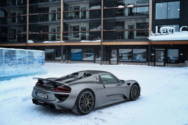 Erste Erkenntnis am nächsten Morgen: die flache Landschafft verdeckt die Sonne weniger als die Alpen, und auf den Weltcup erprobten Schiberg von Levi führen von allen Seiten Lifte, warten muss man nirgends. Ausserdem fahren sie bis spät nachts, Flutlicht ist im Norden selbverständlich. Tiefe Temperaturen sowieso, deswegen steht der Porsche 918 vor dem Berghotel auch auf Spikereifen, Autofirmen laden gerne zu Wintertrainings in die Gegend.