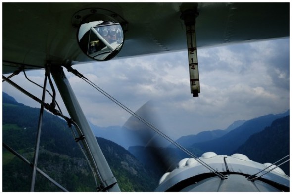 Wäre auch reichlich kompliziert, zwischen all den Stützen und Wanten des Doppeldeckers durch zu klettern. Für ihn nicht, er sitzt hinten, ich hingegen geniesse den freien Ausblick des Bordschützen auf die schweizer Bergwelt. Manchmal so nah, dass ich meine die Schafe auf der Alm kraulen zu können, es riecht nach frischem Heu. „Und“, fragt Walter wieder am Boden, „welcher Flug hat dir am besten gefallen?“ Nun, der Jet war atemberaubend, der Trainer bewustseinserweiternd, aber wenn ich wählen müsste, ich nähme den offenen alten Doppeldecker! „Dacht ich´s mir doch. Du fährst Töff, odr? Ist wie mit dem Motorrad durch die Gegend zu tuckern, das totale Naturerlebnis. Aber mit einer zusätzlichen Dimension von Freiheit!“