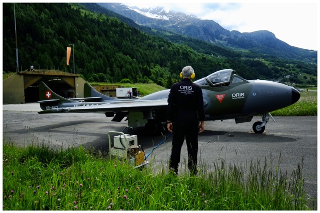 Beziehungsweise an Fliegerclubs, die sich dem Erhalt der historischen Flugzeuge verschrieben haben, wobei ich nicht sicher bin, ob das nicht nur ein Vorwand ist, hurtig über Berg und Tal zu zischen. Auch der Pilatus PC7, in den ich als nächstes gezurrt werden soll, hat seinen Dienst für die Heimat hinter sich. Eine komplette Staffel soll aus Altenrein einfliegen, sobald sich die Nebel gelichtet haben. Natürlich kostet das auch ein bisserl `was, Flugbenzin ist zwar nicht Mehrwertsteuerpflichtig, aber so ein Jettrainer bläst schon ordentlich Sprit durch die Düsen, macht dafür aber auch ordentlich Strecke, ein Knoten sind fast zwei Stundenkilometer, rechnest du. Schön, dass die Schweiz so manch florierende Firma beheimatet, traditionsreiche gar, und wenn eine Uhrenmanufaktur wie ORIS, die schon vor dem Zweiten Weltkrieg für die US Air Force Fliegeruhren entwickelt hat, diesen Umstand feiern will, dann haben Alle was davon. Nicht nur die Firma ihre Werbung und die Clubs Unterstützung, sondern, so wie heute hier in Ambrí, auch ganz gemeine Fans, die Gelegenheit zu einem Rundflug erhalten. Halt nicht im ausgemusterten Militärjet, aber die alte Antonov hat auch ihre Reize, ihr Sternmotor brummt beruhigend vor sich hin, draussen zieht beruhigend der Wald vorbei, jeden Specht sieht man, so nahe fliegt sie am Abhang entlang.