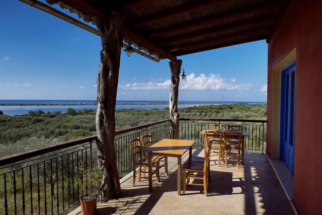 Bei den Vlassis kann man auch Urlaub am Bauernhof machen, zwei kleine Häuschen haben sie dafür gebaut, vom Balkon blickt man über See und Dünen aufs Ionische Meer im Westen. Zum Frühstück spaziert man durch Olivenhain und Gemüsefeld, einfach der Nase nach, Agathis Kochkünste sind unwiderstehlich.