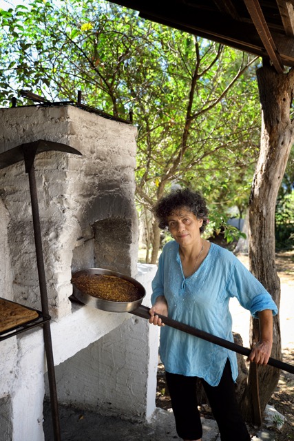 Agathi und ihr Mann stammen von der Insel, haben dann in Athen studiert und gearbeitet, bis es sie um 1990 wieder zurück zu den Wurzeln gezogen hat und sie sich hier ein kleines Paradies eingerichtet haben. „In´s Kochbuch hab ich das letzte Mal als Teenager geschaut, dem von Sophia Skouras, das damals jede Mutter ihrer Tochter als Vorbereitung auf die Ehe geschenkt hat! Aber seit damals koche ich aus der Erinnerung an Geschmäcker, mit dem, was gerade reif ist, Gerichte, die ich seit meiner Kindheit auf Korfu kenne.“ Wobei sie auch gleich betont, dass „natürlich“ oben in den Bergen im Norden ganz anders gekocht wird, als hier im flachen Süden, selbst auf einer kleinen Insel findet sich immer eine Gelegenheit subtile Unterschiede zu finden.