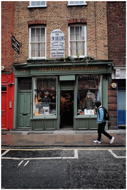 So gestärkt kann man sich getrost auf den Weg in Richtung Soho machen, stets durch kleine Gässchen, die sich jedem Versuch rechtwinkeliger Ordnung widersetzt haben, den Plan zum Wiederaufbau nach dem grossen Stadtbrand von 1666 hat man angeblich Philadelphia geschenkt, dort findet man sich jetzt zwar jetzt leichter zurecht, die Londoner wollten lieber weiter durch enge, gewundene Gassen schleichen. Die hunderttausend Menschen, die damals obdachlos wurden sind offensichtlich noch immer da, jetzt als Konsumenten, an Gelegenheiten sein Geld loszuwerden herrscht kein Mangel, für jede Vorliebe findet sich ein Spezialist. Von handgepflückter Schokolade bis zum Sneaker in jeder Farbschattierung der RAL Palette, aber auch Liebhaber längst woanders abgelegter Kleidung werden hier fündig. In einem beängstigend windschiefen Haus in der Earlham Street im Stadtviertel Seven Dials bieten Doug Gunn und Roy Luckett im Vintage Showroom die Beute ihrer Sammelleidenschaft feil, viele Stücke hatten schon ihren grossen Auftritt im Film, angepasst wird selbstverständlich so, dass es Keiner sieht.
