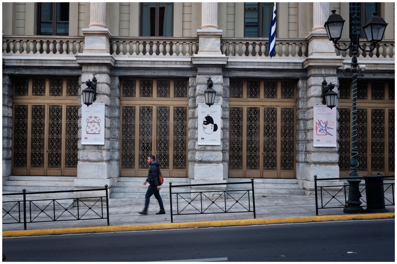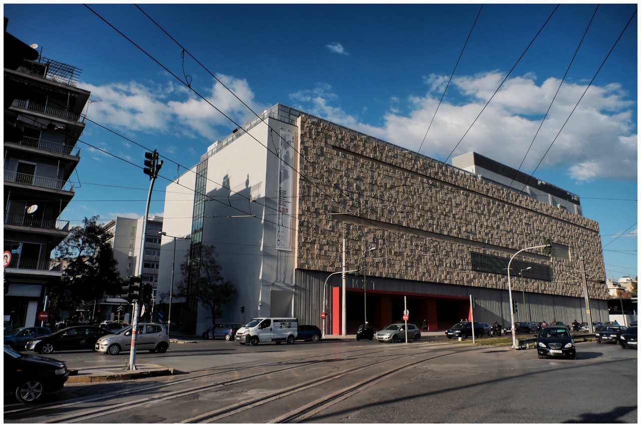 Man muss aber auch gar nicht besonders geschult sein, um das zu erkennen, dreht man nämlich der, übrigens bislang sträflich unterbeachteten, Athener Küste den Rücken zu, baut sich eine Kulisse von historischer Dimension auf. Beschützt von Parnitha und Penteli liegt die Stadt auf ihren dutzenden Hügeln und Bergen, nach vier Jahrtausenden Siedlungstätigkeit dicht besiedelt. Nur da und dort hat der Respekt vor historischen Fakten noch grüne Schneisen geschlagen, und mittendrin thront die Akropolis auf ihrem Felsen, steinerner Bezugs- und Orientierungspunkt nicht nur Athens sondern auch unserer westlich-demokratischen Kultur. Und direkt unter den strahlend weißen Marmorblöcken der Burgmauer kann man das monolithische schwarze Gebäude des Akropolis Museums erkennen, welches das andere Ende der neuen Museumsachse entlang der Syngrou bildet, zu dem sich, neben dem 2010 eröffneten STEGI, vulgo Onassis Cultural Center, neuerdings auch ein Museum für moderne Kunst gesellt. Und zwar das, ausnahmsweise, nicht von der Stiftung eines verblichenen Reeders eingerichtete EMST.