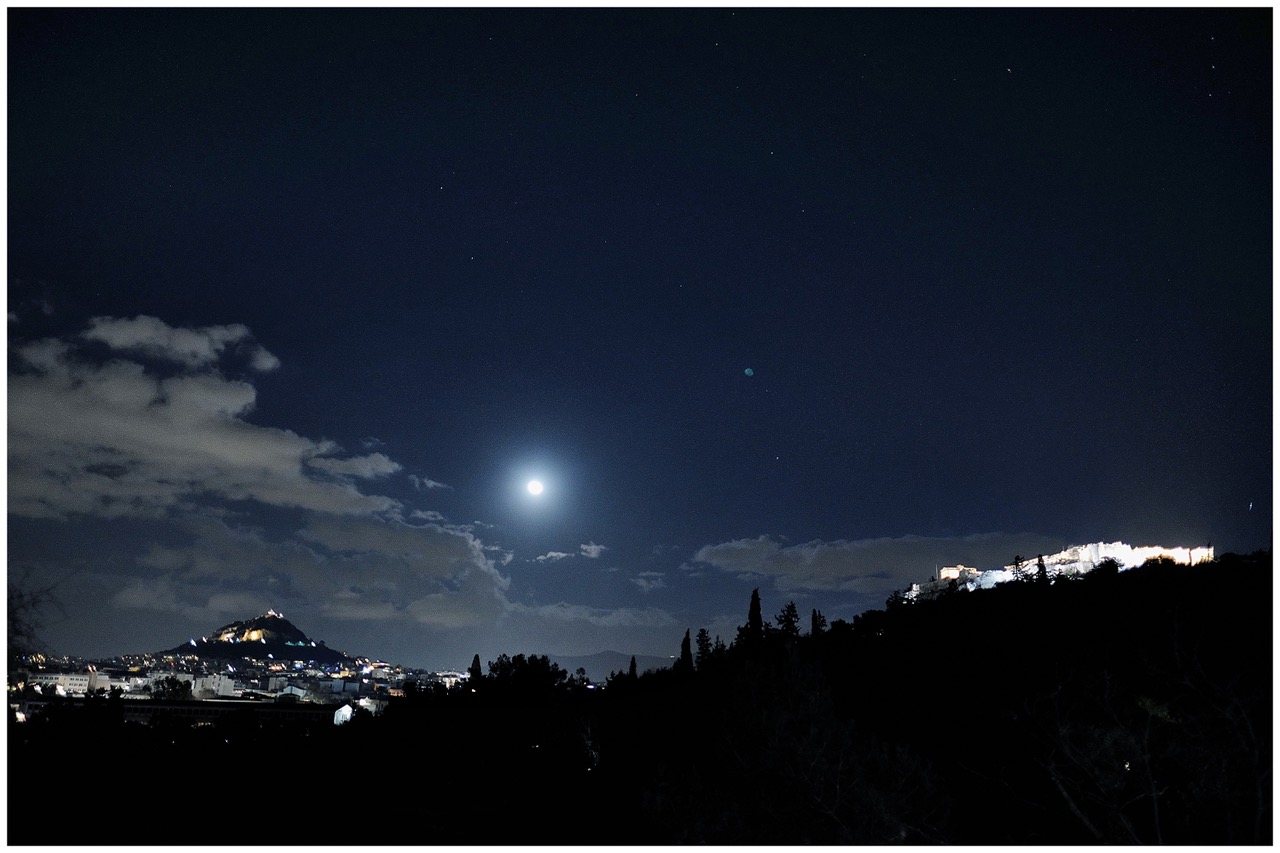Am südlichen Ende des Syngrou Boulevards, der in der ersten Hälfte des 20. Jahrhunderts als Symbol eines neuen, selbstbewussten Athens weitblickend großzügig angelegt worden war, erhebt sich mittlerweile ein unübersehbarer Keil aus der Landschaft, eine grüne Rampe auf der man zwischen Olivenbäumen bis zum Gipfel auf beinahe 40 Metern Höhe wandern und die sich stetig ändernden Ausblicke genießen kann. Erst auf die Häuserwüsten von Nea Smyrni und Tzitzifes, zwei nach der Vertreibung der Griechen aus Kleinasien in den neunzehnhundertzwanziger Jahren eruptiv entstandenen Vororten, das Imittos Gebirge, welches die Stadt von Osten her umarmt, den Hügel der Halbinsel von Piräus im Westen, schließlich die diversen Stadien, teils schlafende Souvenirs der 28. Olympiade, teils allwöchentliche Hexenkessel von Mannschaften vom Schlage von Olympiakos oder Apollon Smyrnis. Und oben angekommen schließlich weit über den Sarronischen Golf, hinüber nach Ägina, Hydra gar, und zu den Gipfeln der Peloponnes.
