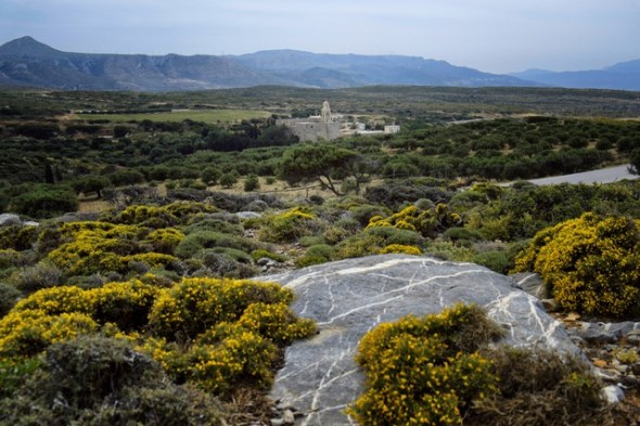 Abends trifft man Polydoros und seine Freunde im kleinen Kafeneion im Zentrum, das aber gerade mal einen Häuserblock vom winzigen Hafen entfernt ist, eine neue Marina gibt es draußen, an der Spitze der Halbinsel, auf der das alte Kastel Selino thront. „Panselino“ heißt übrigens Vollmond, und genau wenn der aufgeht sollte man hinaufsteigen, aufs Kastro, am besten gleich am ersten Abend. Dann hat man sich nämlich auch schon orientiert, in Richtung Osten gibt es eine Reihe ruhiger Strände, gleich hinter dem Ortsende biegt die Straße ab und führt, durch eine kleine Schlucht natürlich, hinauf nach Anidri. Und dort, in der stillgelegten Schule, wartet eine entzückende kleine Taverne, das Menü ist mit bunter Kreide an der Schultafel notiert, verzehren tut man es unter einem Methusalem von Olivenbaum, der Ausblick auf das Libysche Meer wird von den beiden Seiten des Tales wirkungsvoll eingerahmt.