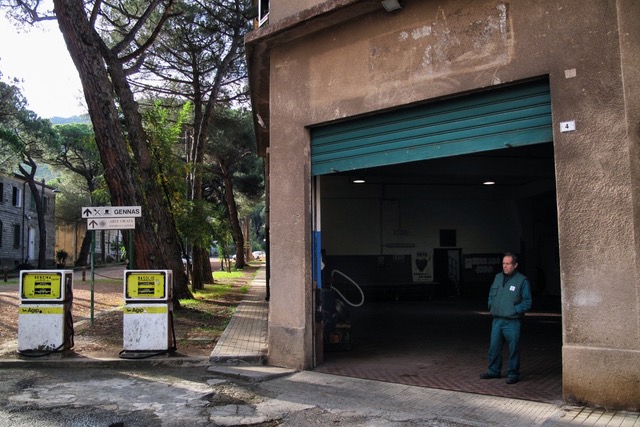 Viel jüngeren Datums, und doch schon wieder archäologischer Natur, sind die Denkmäler der bedeutenden Bergbaugeschichte Sardiniens. Begünstigt durch den vulkanischen Ursprung und die geologische Vielfalt der Insel, hat man schon in der Antike Erze aus den Bergen gebuddelt, ab 1842 wurde die Gegend um den Montevecchio systematisch abgegraben, durchsiebt, und nach verwertbaren Mineralien und Metallen durchsucht. Offensichtlich mit respektablem wirtschaftlichen Erfolg, die Arbeitersiedlung inclusive Krankenhaus, Schule und einer repräsentativen Direktorenvilla mitten drinn zeugt nicht nur von Reichtum, sondern auch vom sozialen Gewissen damaliger Kapitalisten. Dass die Zapfsäule der Betriebstankstelle noch einen dreistelligen Lirebetrag als Literpreis angibt, deutet allerdings schon auf die Einstellung des Betriebs in der zweiten Hälfte des vorigen Jahrhunderts hin, wie auch der Zustand der Grubeneinrichtungen.