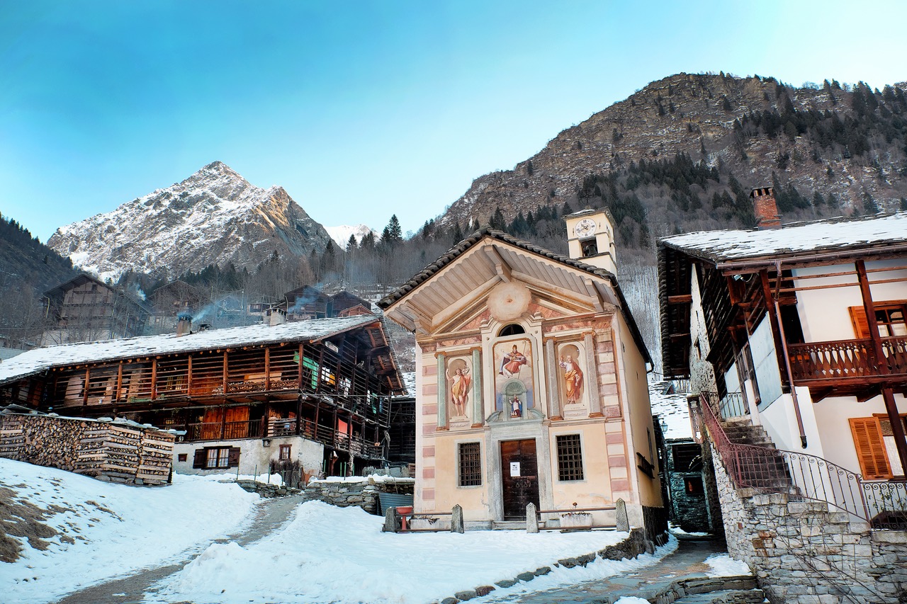 Warum dann aber dieses Kircherl unter Felswänden mitten im Schnee steht? Berechtigte Frage! Die überraschende Antwort lautet, dass sich ausgerechnet ein germanischer Stamm, Alemannen, um genau zu sein, vor 100 Jahren dieses Irrweges bewusst wurde, spät aber doch. Okay, zu spät, die fruchtbaren Täler waren schon vergeben als die sogenannten Walser neuen Siedlungsraum suchten, nur le Valais, das Wallis war noch übrig geblieben, als sie sie ans sesshaft werden dachten. Das Tal des Rotten, Sie kennen den Fluss wohl eher als Rhone, ist recht fruchtbar, aber nicht wirklich besonders geräumig, die Almen hoch, der Auftrieb steil. Also haben die Walser, erst mal oben, einen Blick auf die andere Seite riskiert und festgestellt: hurra, im Süden ist´s noch schöner!