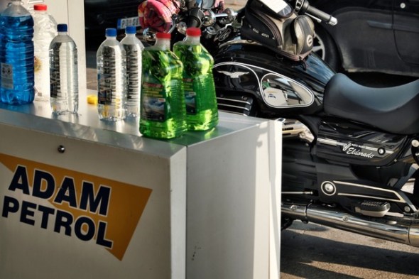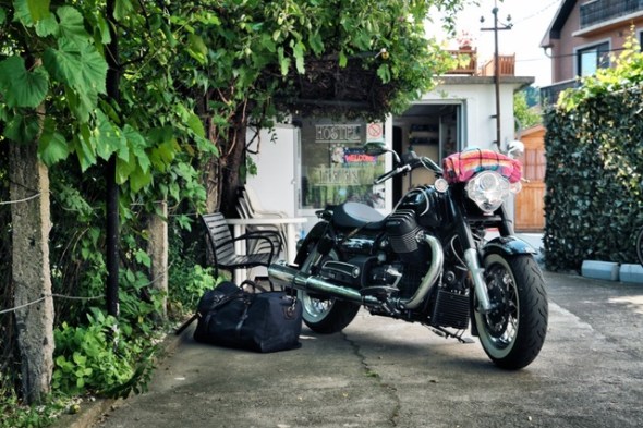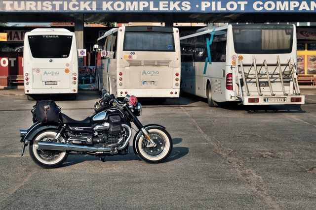 Doch der Reihe nach. Wählt man nicht ausgerechnet ein Wochenende um sich in den Südosten aufzumachen ist die Fahrt, was den Verkehr anlangt, erst mal richtig easy. Die geräumige Filson Duffle Bag von Arnolds schluckt alles was nötig scheint und passt perfekt auf die Guzzi und ist rasch verzurrt, selbst die Matrica, jene Zahlungsbestätigung, die man für die Nutzung der ungarischen Autobahnen benötigt, ist am Grenzübergang rasch erstanden. Eigentlich wollte ich die schon übers Internet erstehen, was sich aber als Zeitverschwendung erwiesen hat. So also fünf Minuten Aufenthalt in Nickelsdorf, dann geht´s kommod weiter bis Budapest, wo die dortige Tangente gerade komplett saniert wird – zähe Sache! Endlose LKW Kolonnen rechts, Urlaubsreisende im Wachkoma auf der rechten Spur, ungeduldige Einheimische überall dazwischen, man kann´s ihnen nicht übel nehmen. Doch mit viel Licht und ein bisserl Hupe bahnt sich die Eldorado stur ihre Spur.