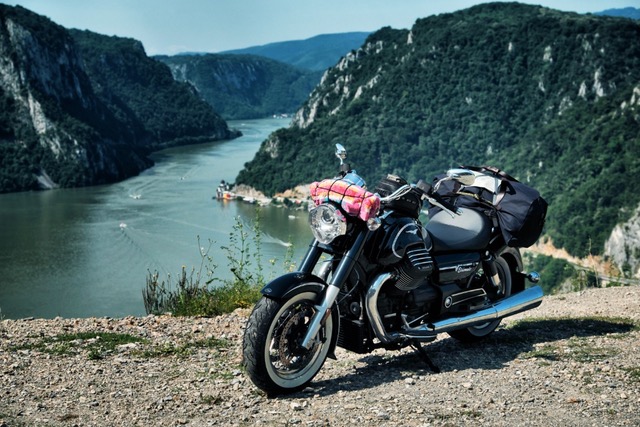 Oder wie aus einer geplanten Urlaubsreise mit der Moto Guzzi Eldorado unversehens ein interessanter Ritt durch die Schluchten des Balkan und eine überraschende Teilnahme an einer Hochzeit in einer tragenden Nebenrolle werden kann. Die Moto Guzzi Eldorado wartete schon lange genug auf einen Einsatz in Sachen Flucht nach Süden, entspannt entlang der Donau durch den Balkan tuckern war die Idee, ganz ohne Stress, dafür wäre die Eldorado das falsche Fahrzeug. Doch für die Erkundungsfahrt ins Eiserne Tor ist sie genau die Richtige, erst zügig durch die Puszta nach Belgrad, dort runter ans Ufer der bald ziemlich breiten, blauen Donau.