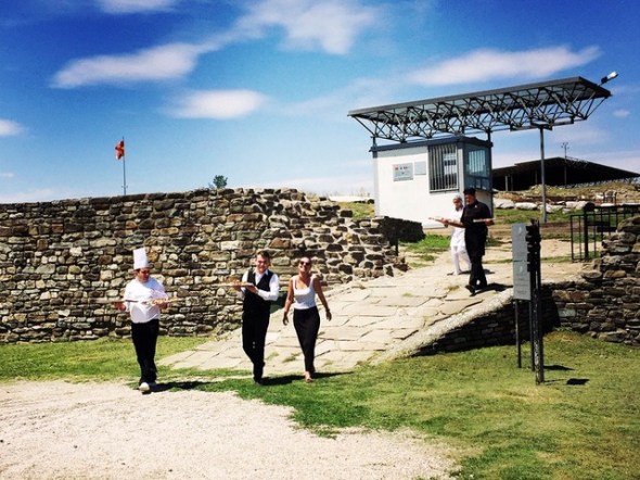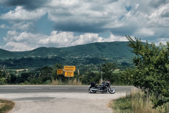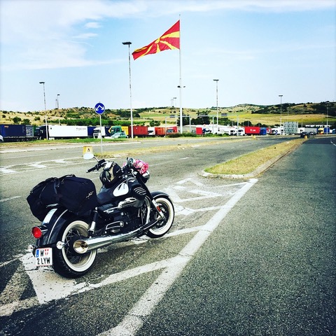 Immerhin habe ich so noch eine wahrlich märchenhafte Region und weitere schwungvolle Bergstraßen Serbiens kennen gelernt bevor ich endlich und ziemlich unmittelbar in der Nähe von Kumanovo auf die Autoput bratstva i jedinstva, die Straße der Brüderlichkeit und Einheit traf. Hurra, insbesondere in Mazedonien kann die was, bald nach der Abfahrt zum niedlichen Flughafen von Skopje teilt sie sich nämlich, nach Süden geht’s durchs Tal der Pcinja, wieder so eine Schlucht wo man Kara Ben Nemsi treffen könnte – aber keinen Gegenverkehr! Und Polizei auch nicht, einfach nicht genügend Platz auf der Bankette, links der Berg, rechts die Schlucht, unten der Fluss, drüben die Bahn, das Tal ist voll und ich reite zügig und glücklich auf der Eldorado meinem Ziel entgegen, hundert Meilen Mazedonien, viel mehr sind´s nicht! Da geht sich sogar noch ein kurzer Stopp in Stobi http://www.exploringmacedonia.com/stobi.nspx aus, wegen dem römischen Amphitheater gibt´s dort nämlich eine kleine Snackbar im Schatten mit eigener Autobahnabfahrt, ganz wie damals als hier die Via Egnatia noch die Via Militaris kreuzte. Salve Consul Quintus Caecillius!