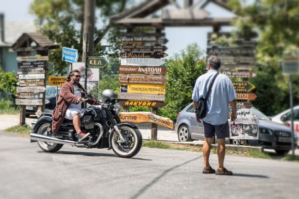 Sowas will man hier nicht, wäre auch schade, schnell mal Selfie und wieder weg, das sollen sie woanders machen. In Damouchari bleibt man, genießt die Abgeschiedenheit, und, ja warum nicht, heiratet zum Beispiel. Ja, geht so einfach, Bürokratie ist zwar ein griechisches Wort, aber wie Alles hier ausgesprochen flexibel. Die eigentliche Instanz hier ist immer noch der Geist von Cleopatra Miramare und das ist ein freier! Das sehen Sie aber sowieso an den Bildern, und die Eldorado passt da bestens dazu. Moto Guzzi war ja nie die Marke für Konformisten, der Reisenden dafür umso mehr, und ich kann Ihnen nur empfehlen: tun sie´s auch! Fahren sie nach Damouchari, mit der Guzzi, zu Apostoli, und genießen. Die Reise, den Ort, das Essen, natürlich das kristallklare Meer und wasweissich wen oder was noch. Aber machen sie´s mit der Guzzi!