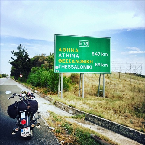 Kurz später kommen auch schon mit die größten mir bekannten Nationalflaggen Europas ins Bild, Mazedonier und Makedonier stehen einander in Nichts nach, nur dass die im Norden stets neu zu sein scheint. Mir völlig egal, ich bin endlich auf der Ethniki Odos, der griechischen Autobahn und somit irgendwie zu Hause, lang genug hier gelebt um wohlige Heimatgefühle zu spüren. Außerdem steht da das Schild welches Athen in nur 547 Kilometern Entfernung verspricht, von wo´s 300 nach Volos sind, von hier also, ach was, Sie haben das sicher schon ausgerechnet. Sprich ein bisserl mehr als zwei Stunden und ich bin da! Na ja, dort bin ich dann halt, in der Hauptstadt des Pilion, Heimat der Kentauren, des Vaters von Achill sowie Schauplatz der Schönheitskonkurrenz zwischen Hera, Aphrodite und Helena welche uns den Trojanischen Krieg und mit Homers Illias eines der herausragendsten literarischen Werke geschenkt hat. Und weil wir grad dabei sind: von Iolkos ist Jason mit seinen Argonauten aufgebrochen um das Goldene Vlies zu suchen, jenen güldenen Widder der sprechen und fliegen konnte, etwas was nicht einmal zeitgenössische Politiker von sich behaupten würden. Oder?