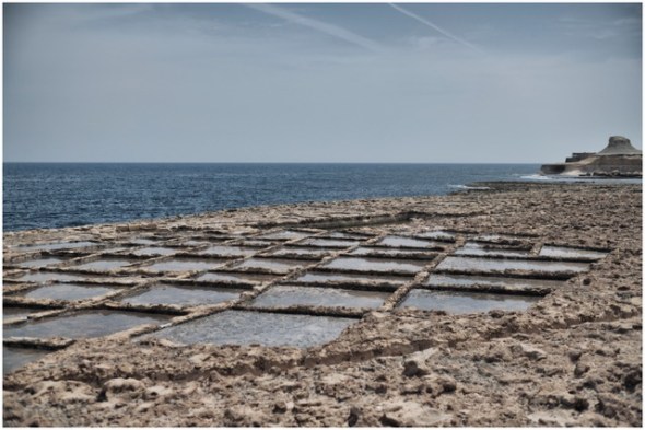 Nicht irgendeinem natürlich, es kommt vom westlichsten Spitzerl Gozos, dort wo die Winterstürme das Meer auf die Klippen werfen. Wo es in großen Vertiefungen erst mal hängen bleibt, sobald der Frühling kommt beginnt das Wasser zu verdunsten, die verbleibende Sole wird dann in flache Bassins weitergeleitet wo der Verdunstungsprozess mit zunehmender Tagesdauer und Temperatur seine Arbeit tut. Bleibt aber immer noch genug für die Familie Cini zu tun, die Letzten, welche die seit phönizischen Zeiten existierenden Pfannen noch bewirtschaften. Der „Saltman“, wie Papa Cini auf Gozo nur genannt wird, verweist stolz auf den 50er, der seine Salzsäckchen ziert, so lange erntet er schon das weiße Gold, „aber ich habe damals nur eingeheiratet, wie lange die Familie meiner Frau das schon macht ist schwer zu sagen!“
